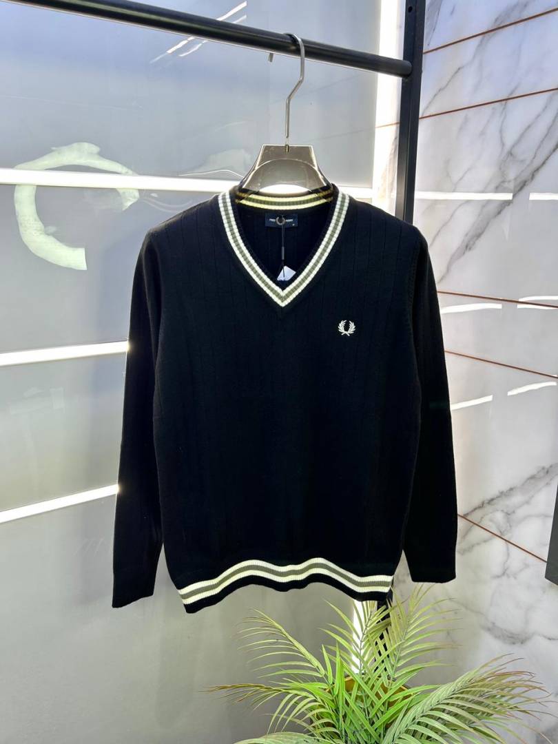 Fred Perry Imported Black V Neck Super Premium Sweatshirts F3270-BL
