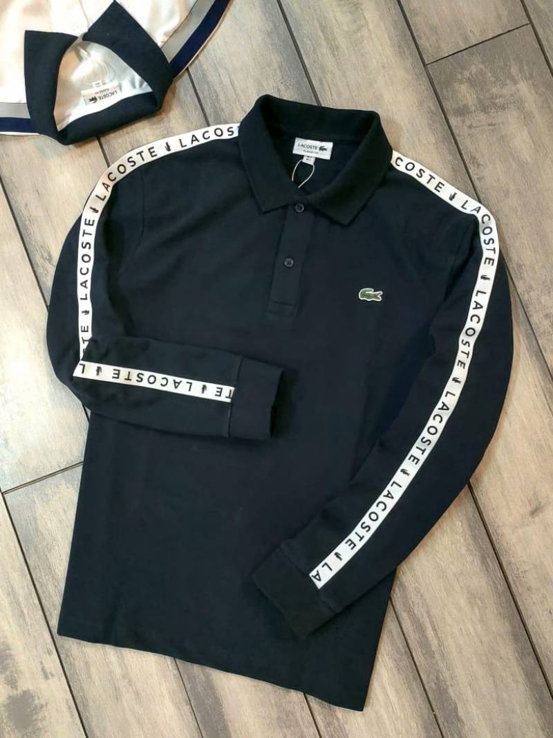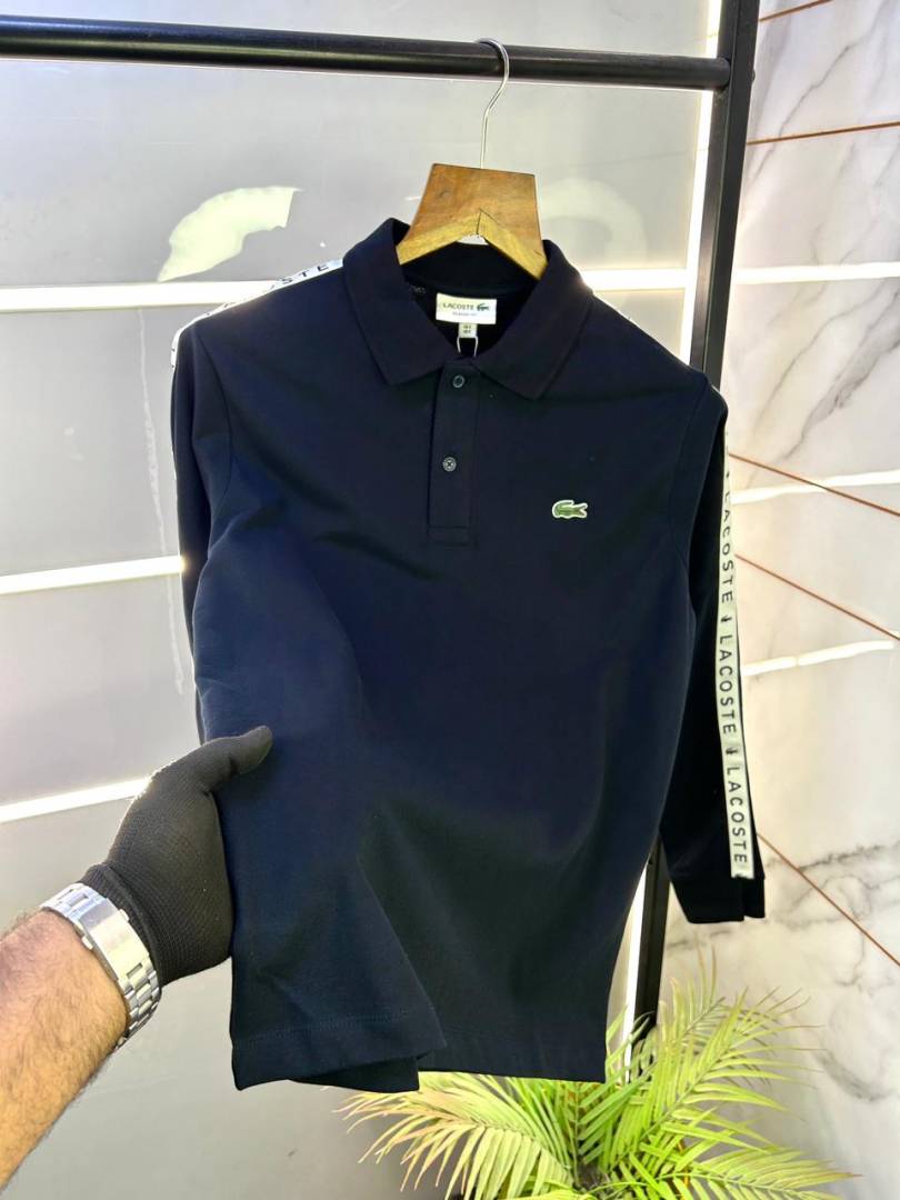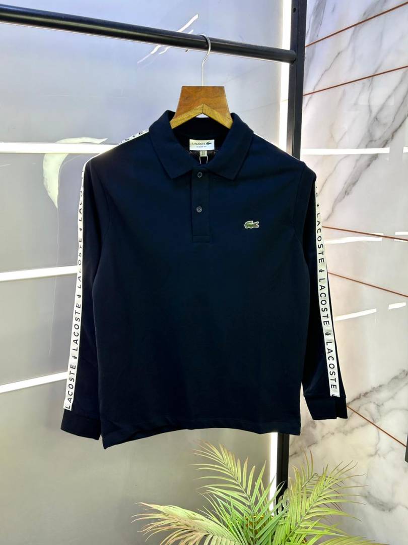 Lacost e Black Polo Neck Full Sleeves Premium Collar T-shirt F3129-B2