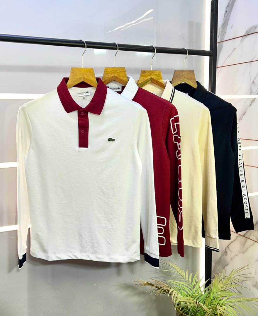 Lacost e Cream Premium Classic Full Sleeves Polo T-Shirt