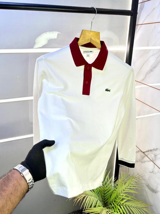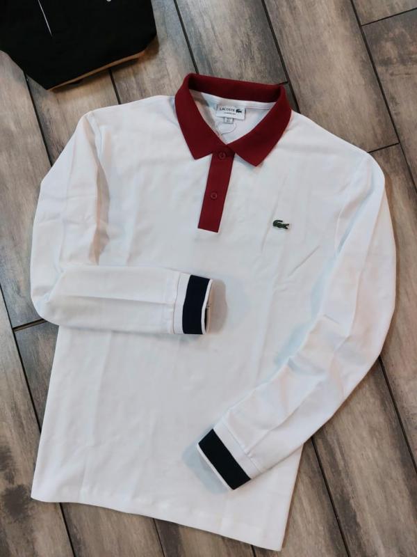 Lacost e White Polo Neck Full Sleeves Premium Collar T-shirt F3129-W1